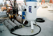 分體循環回收噴砂現場